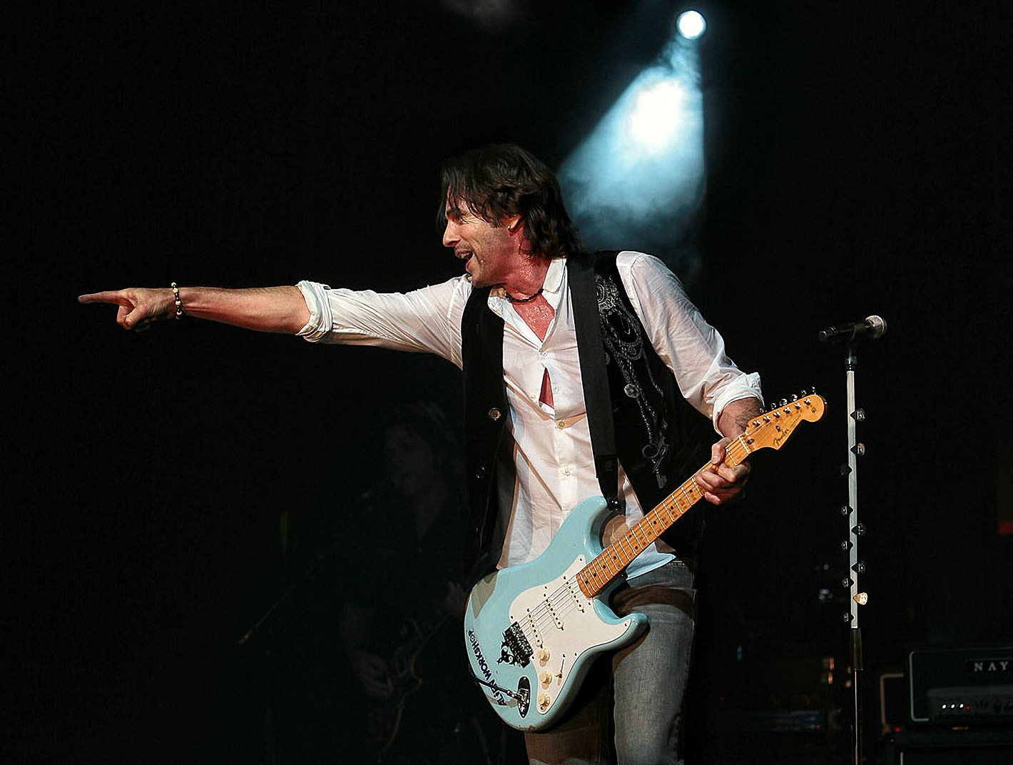 Rick Springfield puts on a good, high energy, show and he really gets a bit overheated as you can see in the photos below. I also noticed he points at the audience as much as Garth Brooks does.